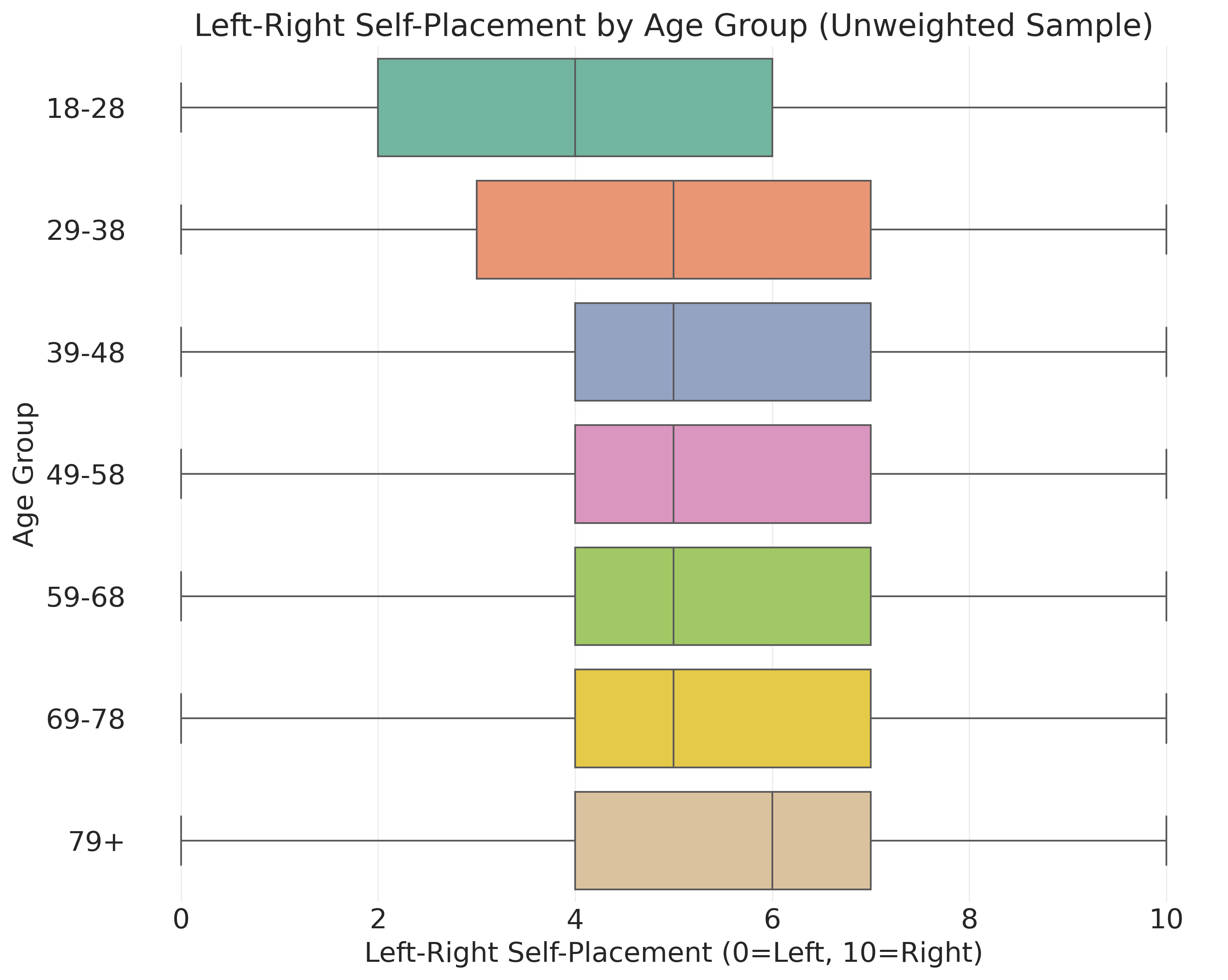 For example, if we find that older people place themselves further to the right on the left-right scale, this could reflect life cycle effects where people become more conservative as they age. It could reflect generational effects where current older generations grew up in eras that fostered conservative values. It could reflect period effects where recent political events have differentially affected different age groups. It could reflect selection effects where more liberal older people may be less likely to participate in surveys. Survey data alone cannot distinguish between these explanations without additional information or research designs that can isolate specific mechanisms.