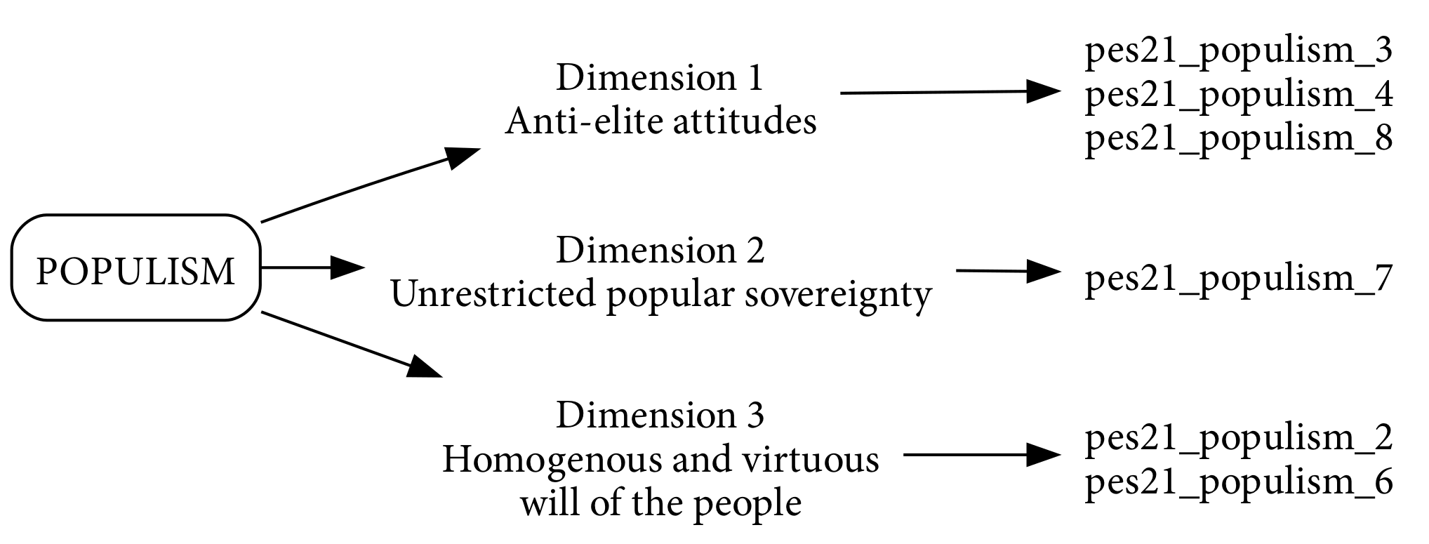 It is worth noting that while some of these items align cleanly with particular dimensions of populism, others, such as the “strong leader” item, sit at the intersection of populism and related constructs like authoritarianism. This overlap raises important questions about measurement, potential construct contamination, and the need for confirmatory factor analysis to clarify the relationships among these indicators and latent dimensions. This is something we’ll return to later in the chapter.